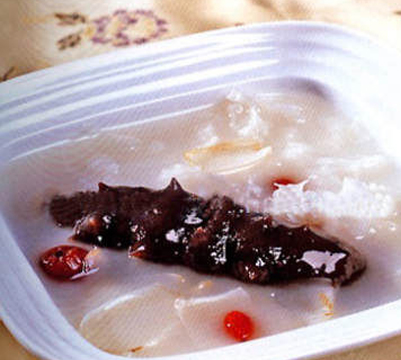 特點(diǎn):海參加草魚組成的羹類菜肴,湯鮮味美。魚肉軟滑不腥,海參肉厚軟糯,雙料搭配滋補(bǔ)美味